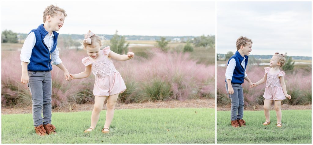 As a Charleston Family Photographer, it was such a joy to photograph my dear friends at Daniel Island Club. The timing was perfect with the perfectly pink Charleston sweetgrass in full bloom.